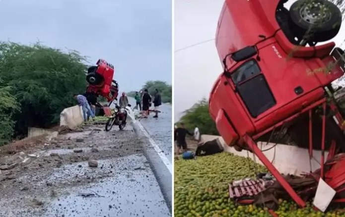 O veículo estava carregado com laranjas e o acidente aconteceu na região de Juazeiro