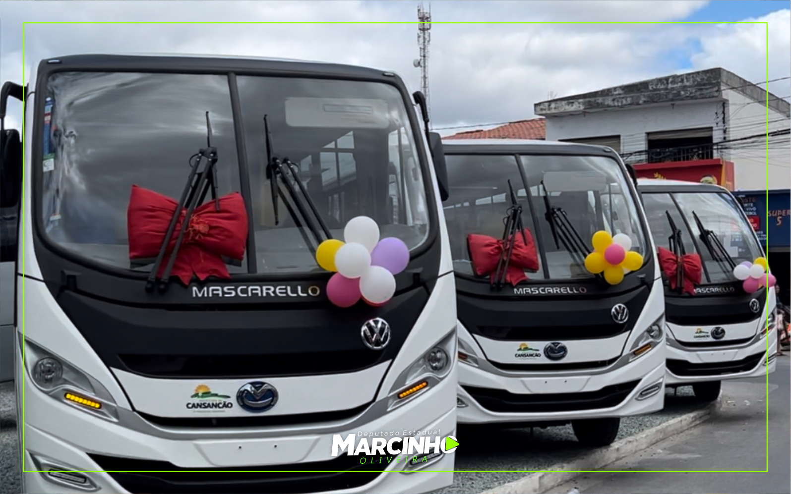 Nestes 100 dias de mandato, Marcinho já entregou 07 retroescavadeiras, 09 tratores e 01 ônibus para municípios de sua representação: Abaré, Araci, Cansanção, Crisópolis, Jandaíra, Monte Santo, Paulo Afonso, Queimadas, Santaluz e Uauá.