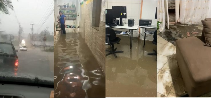 O Calila Notícias recebeu vídeos que mostram carros submersos quando passavam pela linha férrea e uma professora mostrando a quantidade de água que invadiu a escola Luiz Viana Filho, ela avisa aos pais que amanhã pela manhã (05) não haverá aula porque irá tentar fazer a limpeza para ter aula no turno vespertino.
