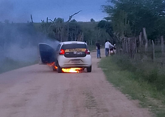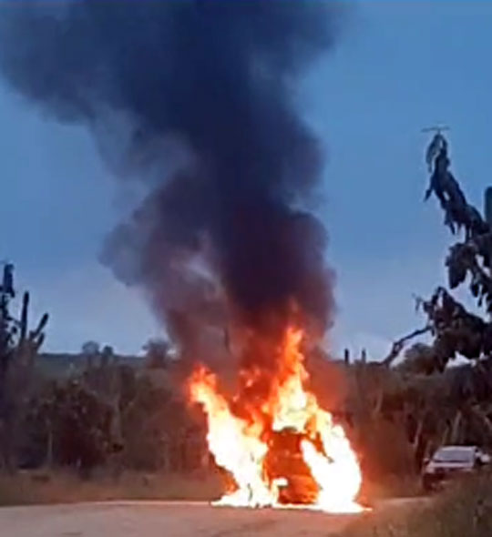 Um carro da Fiat modelo Mobi com adesivo de autoescola ficou completamente destruído após pegar fogo na tarde de sábado (9), na estrada que liga a sede do município de Queimadas ao distrito Espanta Gado, na região sisaleira da Bahia.