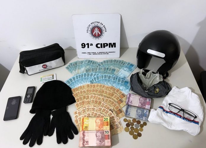 Após tomar conhecimento do roubo a instituição financeira “Caixa Aqui” ocorrido às 09h20 de segunda-feira (12), na cidade de Capim Grosso, território da Bacia do Jacuípe, imediatamente uma guarnição da 91ª CIPM (Companhia Independente da Polícia Militar) sob o comando do major PM Samuel realizou diligências no intuito de capturar o autor do roubo.