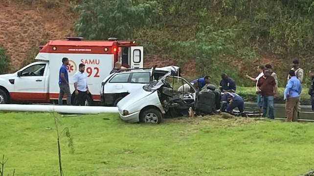 Informações iniciais indicam que o veículo bateu em um poste e o impacto foi de grandes proporções. Duas pessoas ficaram feridas e não há registro de mortes.