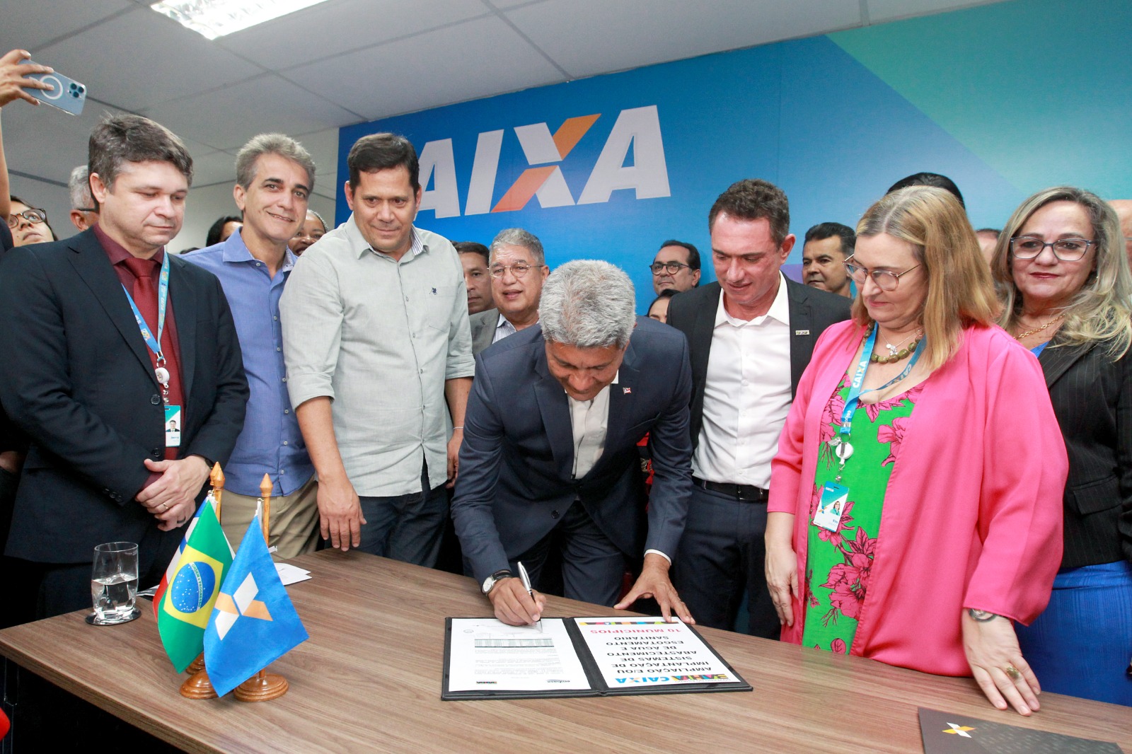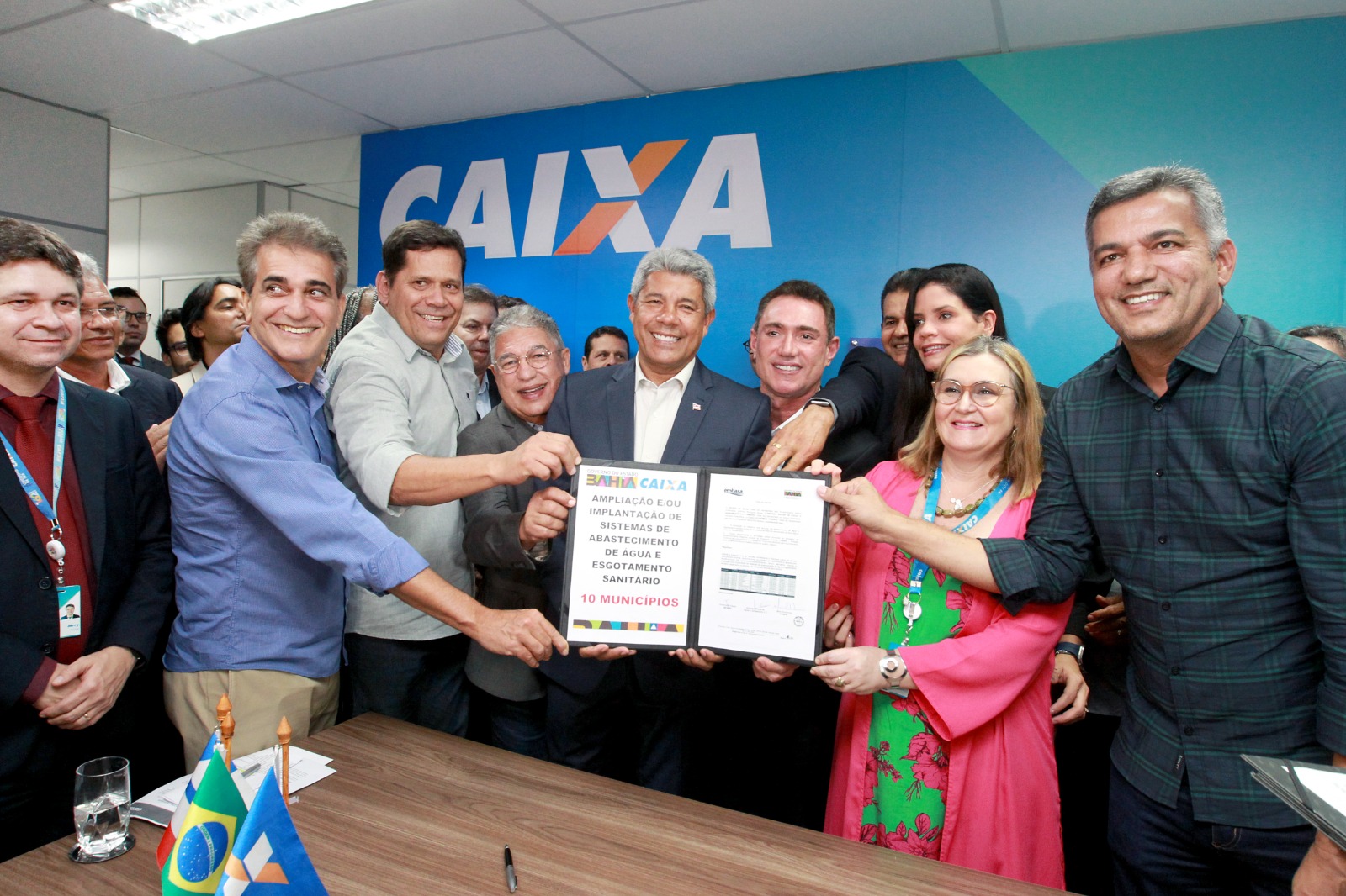 Dez municípios baianos serão beneficiados pelo protocolo de intenções que prevê R$ 730 milhões para financiamento de obras de saneamento básico e esgotamento sanitário para a Bahia. O acordo entre o Governo do Estado e a Caixa Econômica Federal aconteceu na tarde desta terça-feira (18), na Sala das Cidades e Estados, em Lauro de Freitas, que é um dos 74 espaços da instituição instalados no Brasil esse ano, também inaugurado durante o ato de assinaturas com o Governo do Estado e com prefeituras da Bahia.