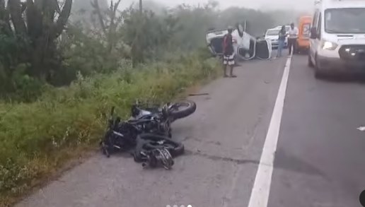Ainda de acordo com Val Souza, o motorista do carro que não ficou ferido, em estado de choque informou que o condutor da moto ultrapassou um caminhão e bateu de frente no dele, que acabou capotando. A esposa do motorista foi socorrida para o Hospital Municipal de Riachão do Jacuípe com suspeita de fratura em cintura pélvica, corte na altura do olho e escoriações pelo corpo, ela não corre risco de morte.