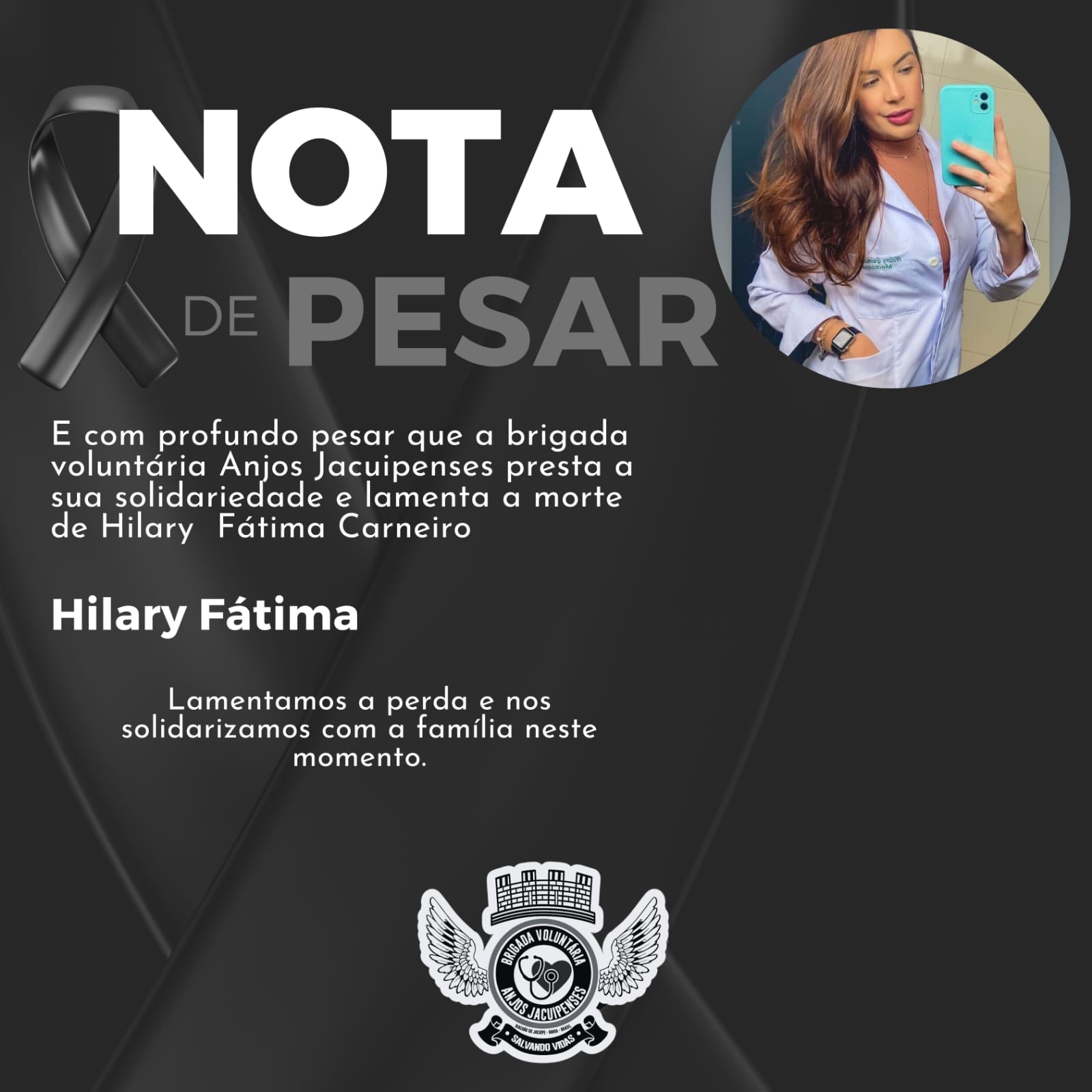 O coordenador da Brigada Voluntária Anjos Jacuipenses Lucival Souza disse ao Calila Notícias que a equipe foi acionada 0h04 deste domingo, 16, chegou ao local menos de 10 minutos depois e deparou com o grave acidente que envolveu 4 vítimas, uma em óbito, posteriormente indentificada como Hilary Fátima Carneiro, natural de Riachão, porém estava morando em Foz do Iguaçu cidade paranaense que faz fronteira com o Paraguai e cursava medicina em Ciudad del Este no Paraguai. Outras duas jovens em estado grave identificadas como Jennifer Cezarino Cedraz, 16 anos, e Flávia Maria de Jesus Oliveira de 30, também são de Riachão. Ambas foram socorridas para o Hospital Municipal de Riachão do Jacuípe.