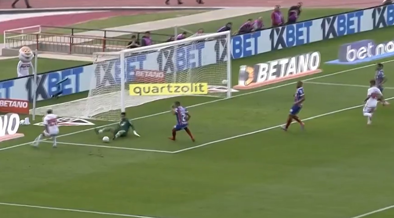 Foi um jogo de muitas emoções, mas nenhum gol. Culpa, principalmente, do goleiro Marcos Felipe, do Bahia. Ele foi bombardeado pelo ataque do São Paulo, empurrado por 56 mil torcedores no Morumbi, que criou chances em sequência, mas não conseguiu vazar o arqueiro baiano.