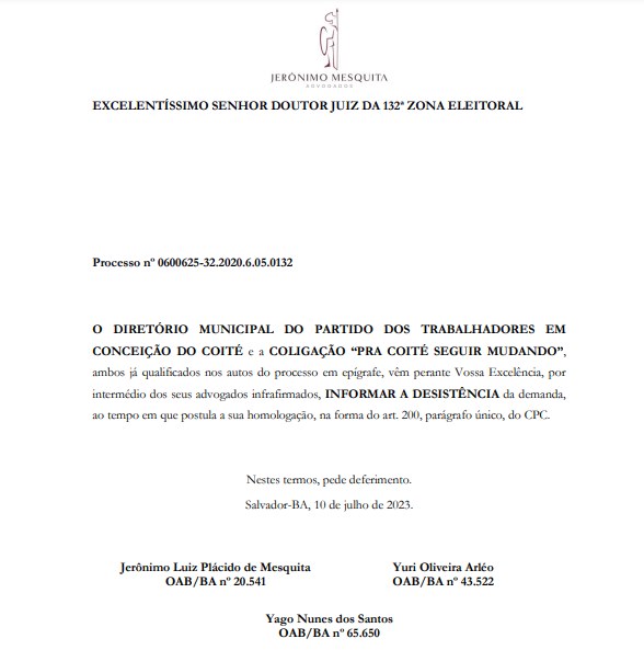 O vereador Ernandes Lopes da Silva, popularmente conhecido por Ernandes de Tó, eleito em 2020 pelo Partido Social Cristão (PSC) recebeu ‘de presente de aniversário’ na última segunda-feira, 10/07, a informação de algo que vinha talvez lhe tirando o sono, o processo na Justiça Eleitoral impetrado pela Coligação “Pra Coité seguir mudando” formado pelo PT, PSD, PCdoB e PP que pedia a anulação de todos os votos computados para os vereadores do PSC. Somente Ernandes foi eleito e caso o pedido foi aceito ele poderia perder o cargo.