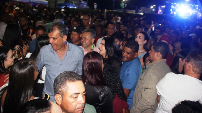 Após os discursos o ex-prefeito Junior do Max ao lado da esposa Quitéria, da filha Keite, deputados Alex e Otto, vereadores e todas lideranças seguiram para a Avenida onde acontecia o Santaluz Fest, se juntaram e cumprimentaram os foliões. Veja fotos: