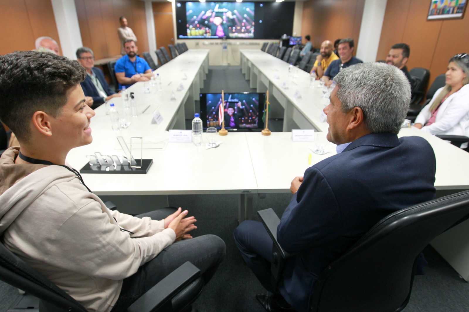 Na manhã desta terça-feira (11), o governador Jerônimo Rodrigues recebeu a visita do jovem cantor baiano Henrique Lima, vencedor da última edição do programa ‘The Voice Brasil Kids’. O encontro aconteceu no Centro Administrativo da Bahia (CAB), em Salvador, e foi marcado pelo reconhecimento à conquista do jovem artista.