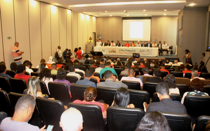 O auditório lotou com representantes dos 4 territórios da Bahia que serão beneficiados com a Universidade Federal do Nordeste da Bahia