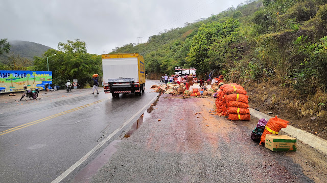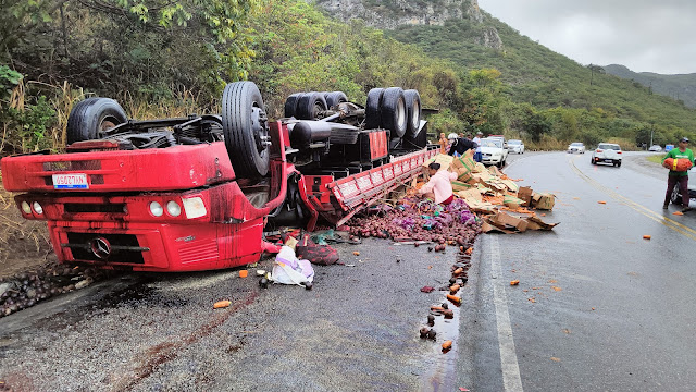 Por volta das 2h da madrugada desta segunda-feira, 14, um caminhão carregado com cenoura e beterraba captou na BR 324, altura da curva do Balneário Sombra e Água Fresca, no município de Jacobina.