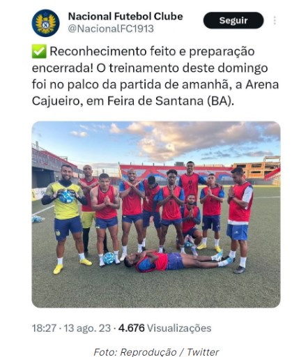 “Reconhecimento feito e preparação encerrada! O treinamento deste domingo foi no palco da partida de amanhã, a Arena Cajueiro, em Feira de Santana (BA)”, escreveu o clube.