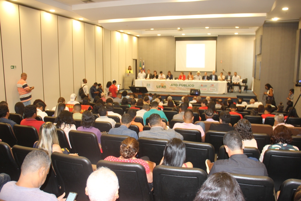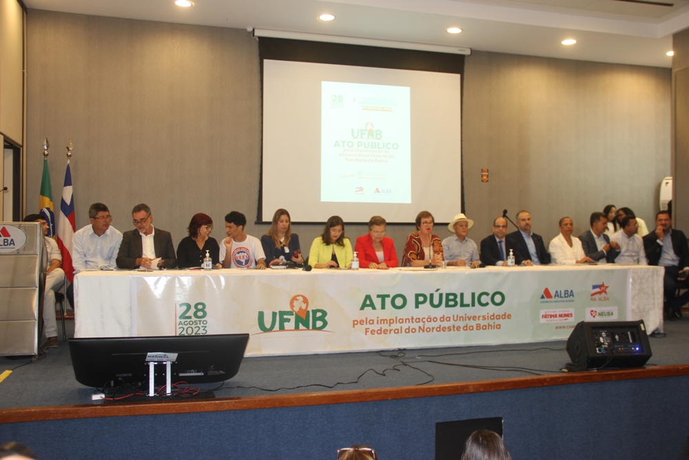 Um grande ato público proposta pelas deputadas Fátima Nunes e Neusa Cadore foi realizado na manhã de segunda-feira, 28, na Assembleia Legislativa do Estado da Bahia (ALBA) que tinha como principal objetivo envolver lideranças políticas e profissionais da educação e estudantes dos quatro territórios de identidade que compõem a região Nordeste da Bahia (Sisal, Jacuípe, Nordeste II e Litoral Norte e Agreste), o auditório ficou lotado, presença da secretária de Educação, três deputados federais, reitores de duas universidades federais, prefeitos, representante da classe estudantil, Defensoria Pública, enfim, diversas autoridades que estão engajadas no projeto de implantação da Uiversidade Federal do Nordeste da Bahia (UFNB), projeto este que começou ser discutido em 2010, mas que ganhou força a partir de 2014 e permaneceu até o Impeatchamn da então presidente Dilma.