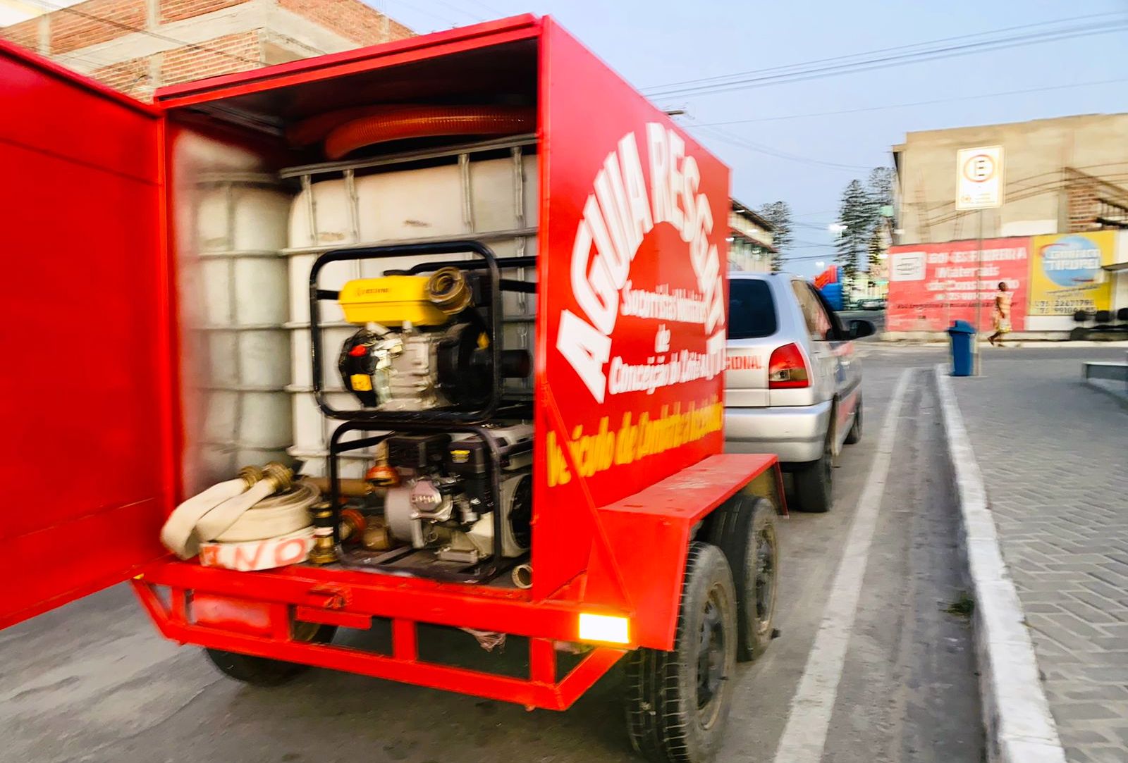 o reboque tem capacidade de 1.000 mil litros de água, suficiente para debelar pequenos e médios incêndios enquanto caminhões pipa chegam para recarregar o mesmo, tendo uma bomba a gasolina de alta pressão para captação de água em locais próximos e outra usada para conter as chamas.