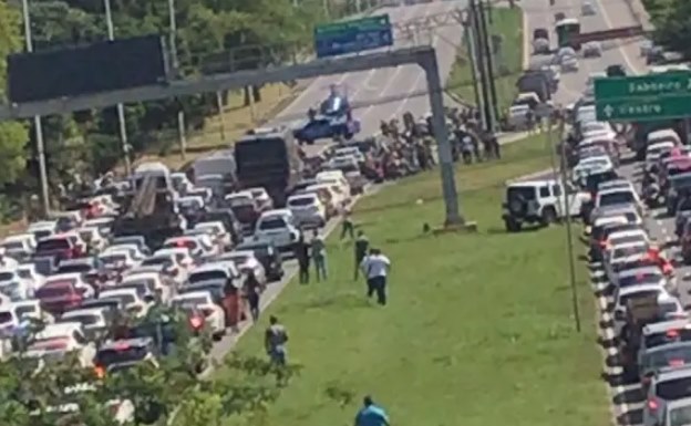 O acidente deixou a via engarrafada e há retenção de carros.