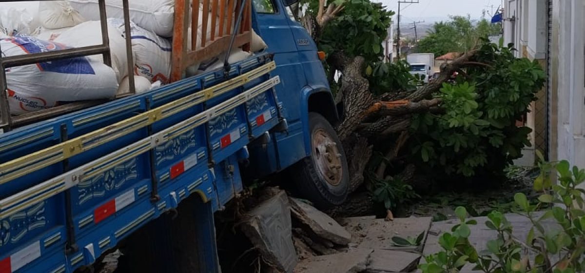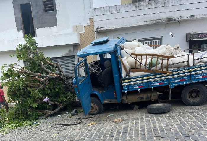 Um caminhão conhecido como ‘Mercedinho’ se envolveu em um acidente na manhã desta sexta-feira, 13, após colidir e derrubar uma árvore na Praça Antînio Cassimiro de Azevedo, Bairro da Quadra em Coité.