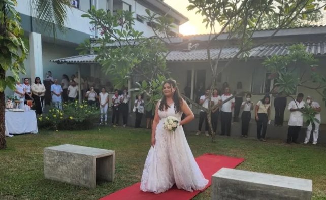 “Quando entreguei a carta, foram menos de 24h para me darem a resposta positiva. O hospital orientou a fazer a cerimônia em um dos espaços mais próximos da UTI pra poder ter assistência rápida, se fosse necessário. Ela gostou muito”, descreveu a pedagoga.