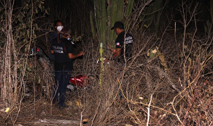 A equipe do Calila Notícias chegou ao local do acidente praticamente no mesmo horário da chegada dos peritos do Departamento de Polícia Técnica (DPT) de Serrinha, ou seja, por volta de 01h30 e registrou o cenário trágico. Os dois corpos dentro do mato às margens da rodovia, cerca de 25 metros a frente a motocicleta dentro de uma propriedade ao lado do carro que bateu em um poste de rede de alta tensão, não se sabe se pegou fogo ao atingir a moto ou o poste.