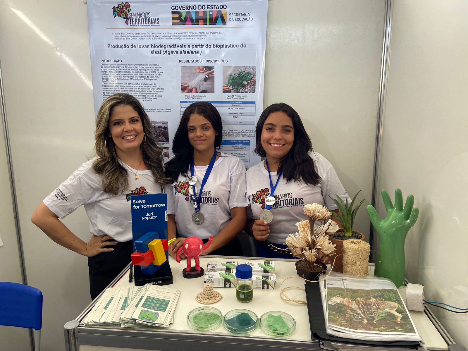 A estudante Sarah Moura, 16, que faz o curso técnico em Análises Clínicas, no Centro Territorial de Educação Profissional (CETEP) do Sisal II, em Araci, está apresentando com a sua equipe o projeto “Luvas biodegradáveis a partir do sisal”. “O objetivo é produzir essa luva utilizando o nosso ouro local, que é o sisal, para substituir as luvas comercializadas no mercado. Estou gostando muito de participar, pois é uma oportunidade de dar visibilidade ao nosso projeto e de trocar experiências com outros estudantes”, disse.