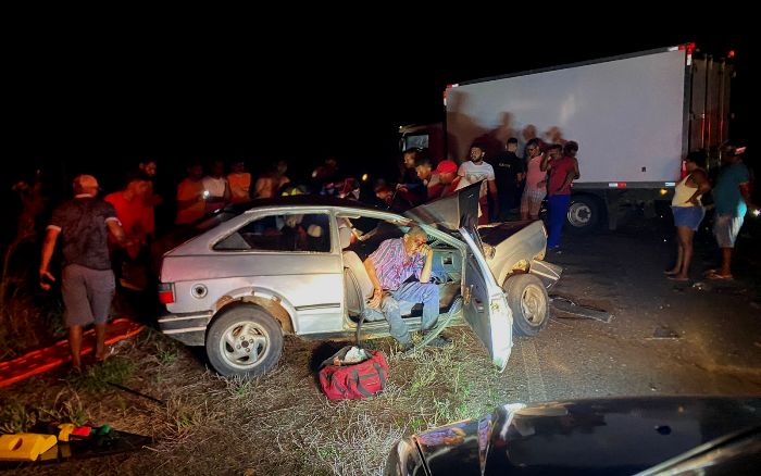 Uma imagem feita pela equipe do Águia mostra a outra vítima que viajava no carona sentada no banco do carro, aparentemente consciente e com ferimentos na face. O homem identificado como João da Silva Oliveira, 56 anos, também morador de Almas, foi levado para o HP pela Brigada Anjos da Vida onde deu entrada com laceração profunda na testa, queixando de dores no tórax e perna esquerda.