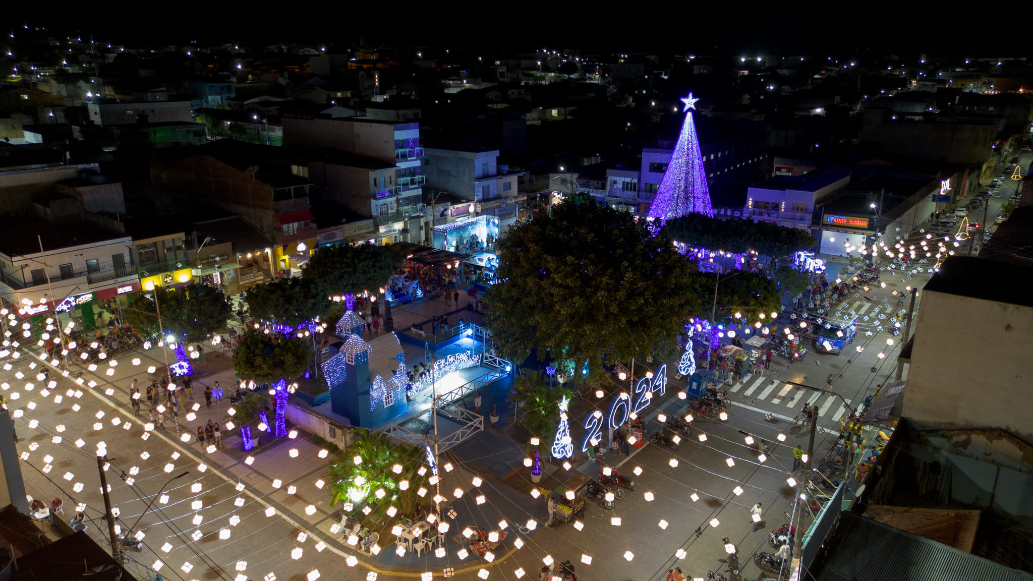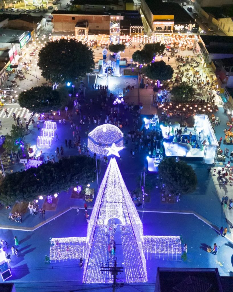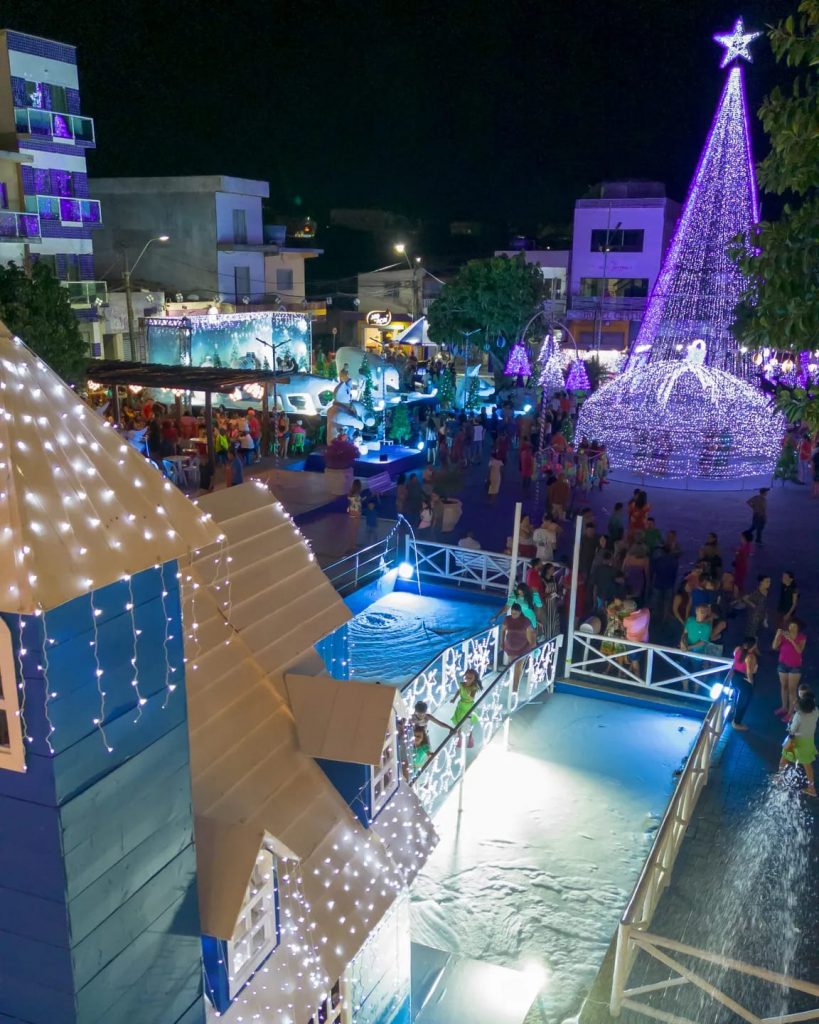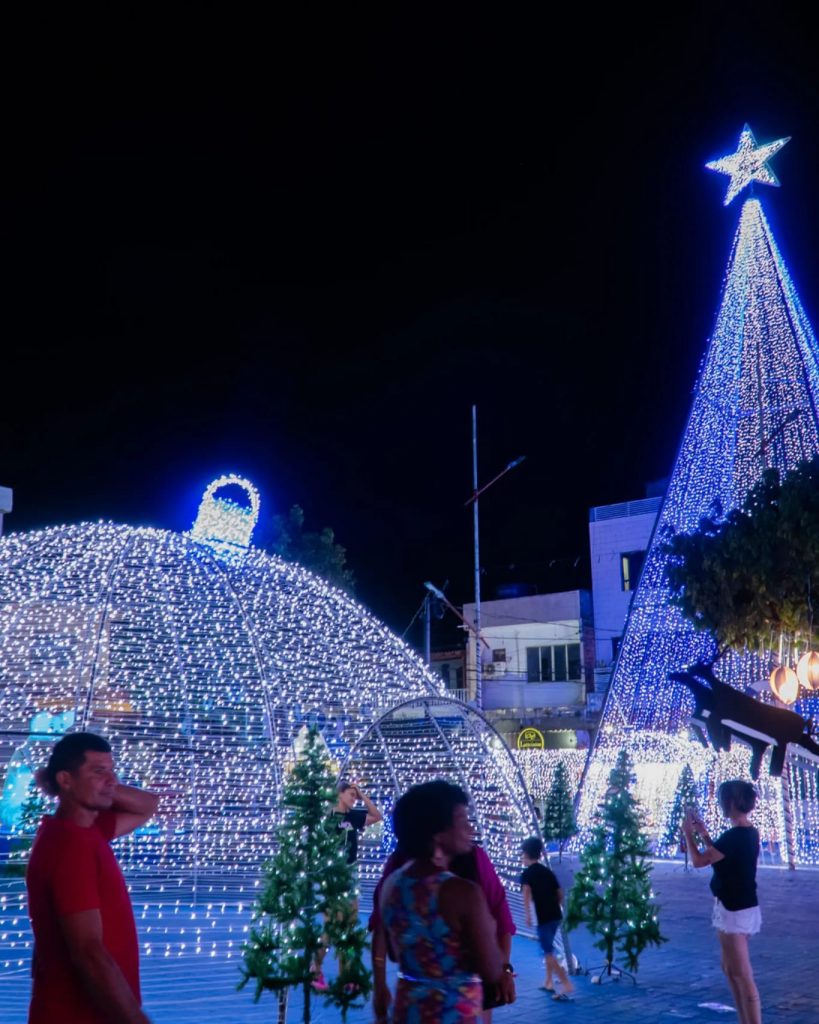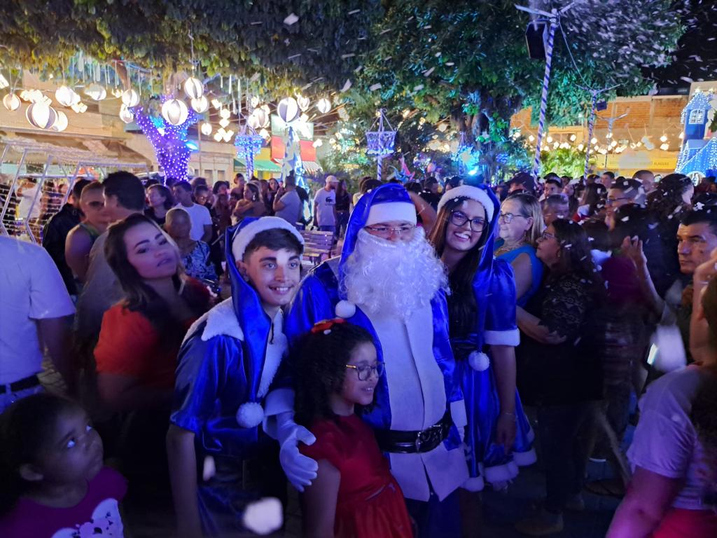 Foi inaugurada no último sábado, 09, na cidade de Euclides da Cunha, Nordeste da Bahia, a decoração e iluminação natalina 2023 num formato bastante diferente no que diz respeito a cor, ou seja, o tradicional vermelho deu espaço ao azul que certamente vem divididinho opiniões, até o simbolo maior do natal, o bom velhinho este ano trocou de roupa.