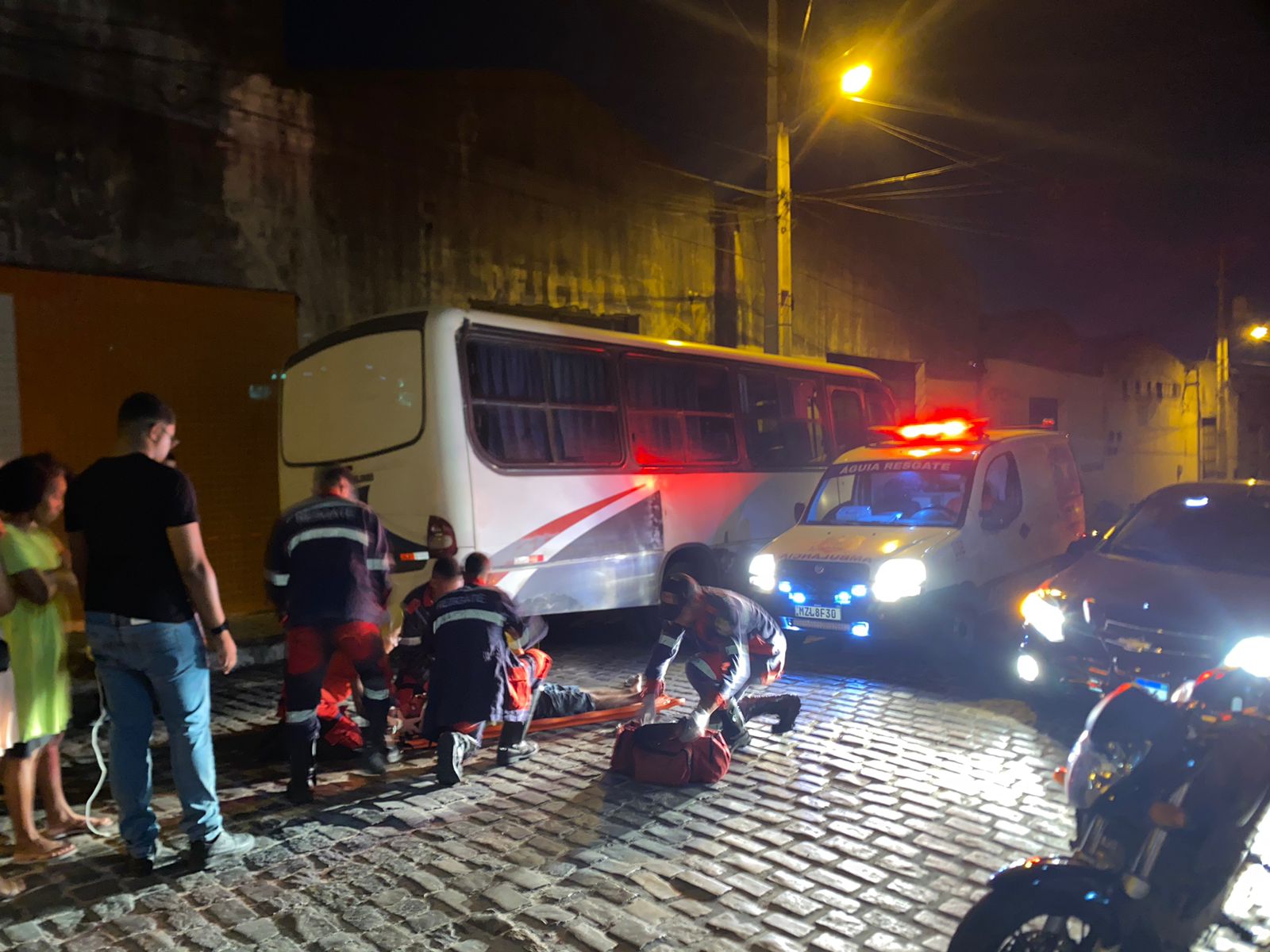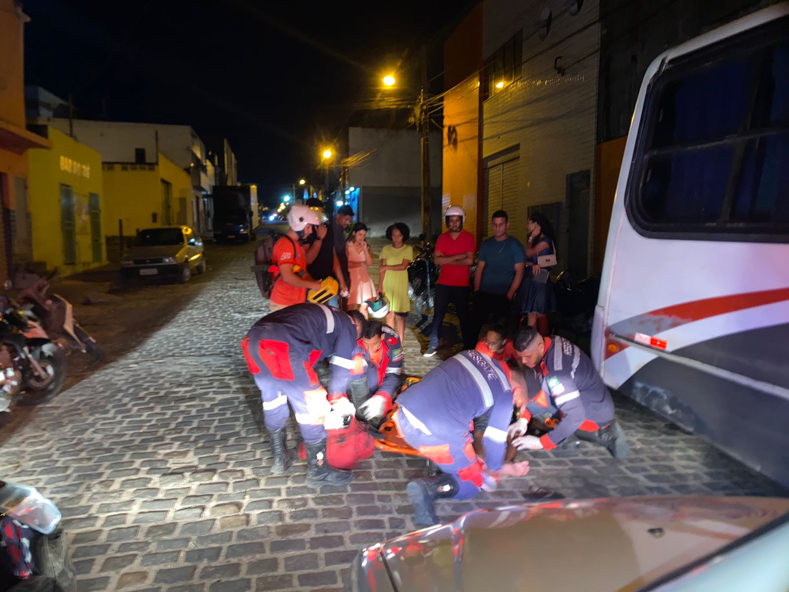 Ao chegar no local encontrou o homem ao solo, consciente, desorientado, lacerações no pé e a motocleta sobre seu corpo. Tudo isso após ele colidir no fundo de um micro-ônibus que se encontrava estacionado.