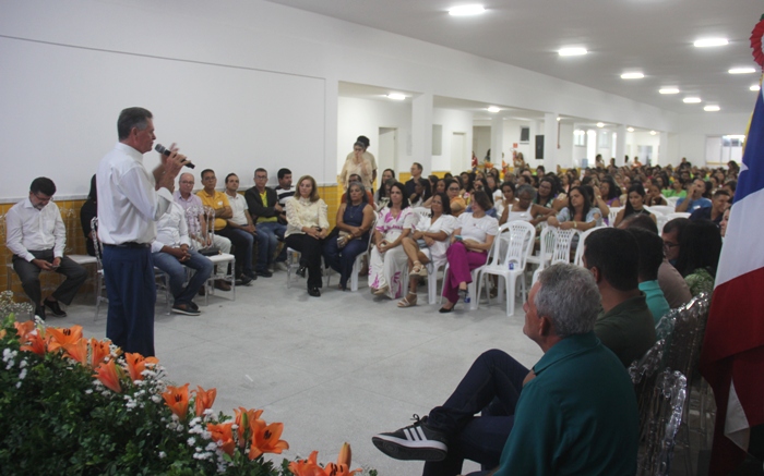 O gestor revelou dados importantes em relação ao número de alunos matriculados no município, mais de cinco mil no total, quase o dobro do número informado por Joelma quando assumiu em 2021 e ele atribui tudo isso ao grande trabalho que envolve todos os trabalhadores da educação. “O grande aumento no número de alunos em Valente é o que possibilita os investimentos e a valorização dos salários do professores que de 2022 pra cá tiveram aproximadamente cinquenta por cento de reajuste, e nós em momento algum hesitamos mandar para a câmara para aprovação desse teto que é justo pra o professorado, ter esse salário digno, hoje Valente paga um dos maiores salários de toda região”, afirmou Amaral.