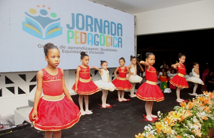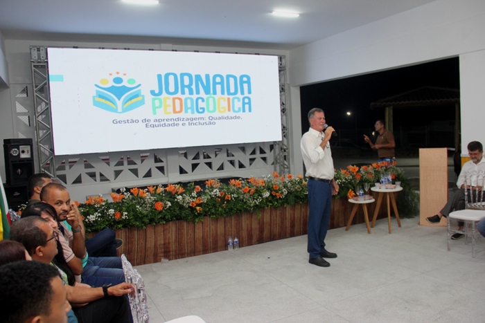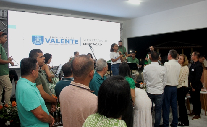 Várias atividades marcaram a abertura da Jornada Pedagógica que tem como tema “Gestão de Aprendizagem: Qualidade, Equidade e Inclusão. A Orquestra Sisaleira formada por um grupo de músicos oriundos da Orquestra Santo Antônio de Conceição do Coité deu boas vindas aos participantes, o Balé da turma de educação integral da Escola Olegário Tiago, seguido do grupo de Teatro Leitura e Arte, da Escola Veríssimo Ferreira, da comunidade da Encruzilhada, um vídeo institucional mostrando tudo que foi feito na edução de Valente de 2021 para cá foi apresentado ao público presente, antecederam a palestra com Sérgio Shell formado pela Associação Internacional de Coaching.