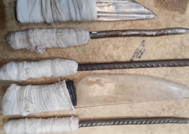 Os instrumentos perfurocortantes foram produzidos a partir de material retirado das paredes das celas. Um procedimento disciplinar deverá ser instaurado para identificar os autores.
