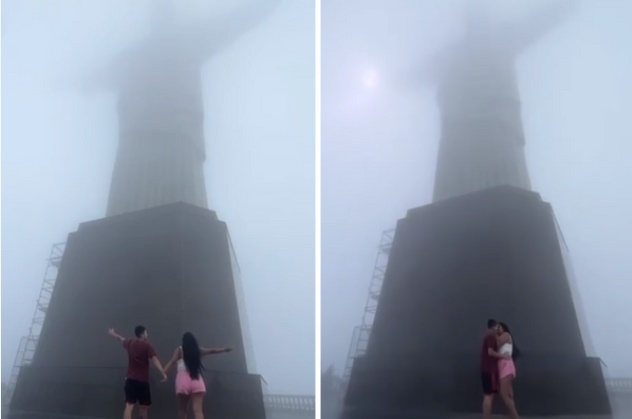 Um raio atingiu o Cristo Redentor, no Rio, na tarde desta quarta-feira (21). Um casal estava tirando uma foto no momento que o raio atingiu a mão do monumento. As informações são do g1.