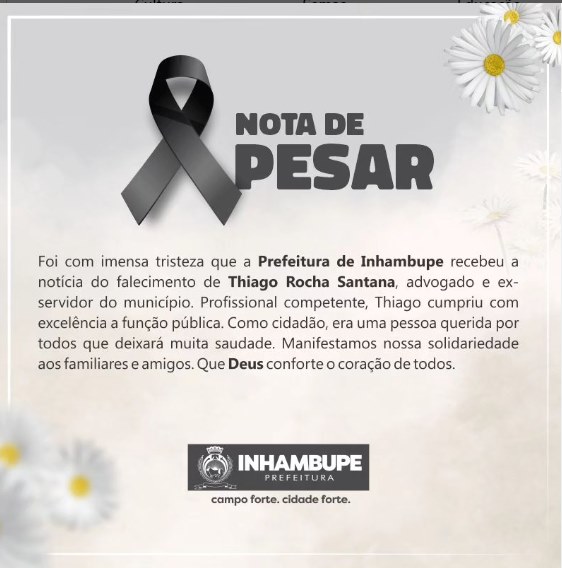 A Prefeitura de Inhambupe divulgou nota de pesar pela morte do advogado que também já prestou serviços ao município.