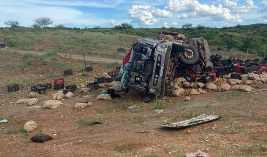De acordo com informações o acidente tipo capotamento aconteceu próximo ao posto fiscal de Pipocas. O veículo estava carregado com batata e tomate.