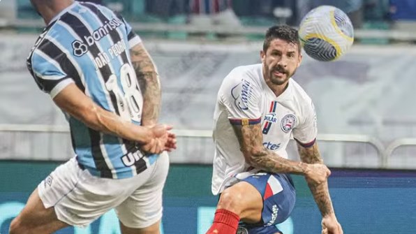 O Bahia venceu o Grêmio por 1 a 0, em partida disputada na noite de sábado, 27, válida pela quarta rodada do Campeonato Brasileiro. O único gol da noite na Arena Fonte Nova, em Salvador, foi marcado por Everaldo, e foi um golaço. O camisa nove recebeu passe de Everton Ribeiro dentro da área, deixou Kannemann no chão e chutou forte de perna esquerda no ângulo. A pintura garantiu mais três pontos para o Esquadrão, que dorme na quarta posição da tabela.