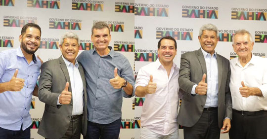 Encontros entre pré-candidatos e líderes do PSD e MDB com o governador Jerônimo Rodrigues (PT) nesta semana foi percebido como um possível movimento de articulação para a formação de uma chapa conjunta dos dois partidos na disputa pela prefeitura de Santaluz nas eleições deste ano. Fotos divulgadas nas redes sociais na quinta-feira (25) mostram Léo Reis, pré-candidato pelo PSD, e Joelcinho, pré-candidato do MDB, ao lado de Jerônimo, sugerindo progresso nessa possível aliança.