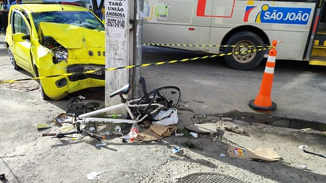 De acordo com os populares, o condutor do veículo teria sofrido um mal súbito no volante e acabou atingido o ciclista. Na colisão, o veículo ainda perdeu o controle, atingiu a lateral de um ônibus e depois um poste de energia.