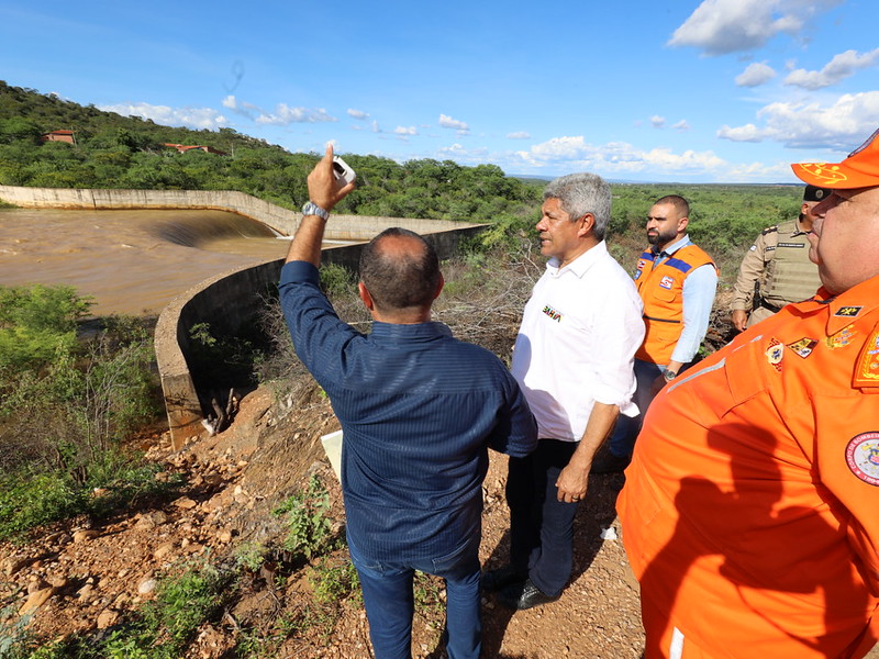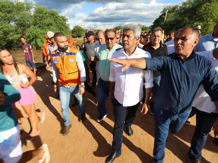 O governador Jerônimo Rodrigues esteve em Canudos, na tarde de sábado (6), para acompanhar as ações emergenciais realizadas pelo Estado após as chuvas que atingiram os municípios, recentemente. Jerônimo sobrevoou Canudos e Jeremoabo, acompanhado do superintendente de Proteção e Defesa Civil da Bahia, Heber Santana, e dos prefeitos das cidades, e anunciou reforços para atender a população afetada. O comandante-geral do Corpo de Bombeiros Militar da Bahia (CBMBA), coronel Adson Marchesini, também esteve presente nas visitas.