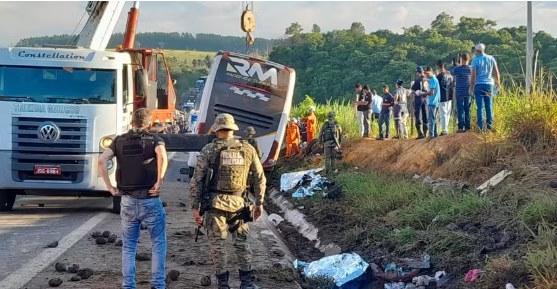 Ônibus de turismo do Rio de Janeiro tomba em rodovia na Bahia e deixa 8 mortos e 24 feridos