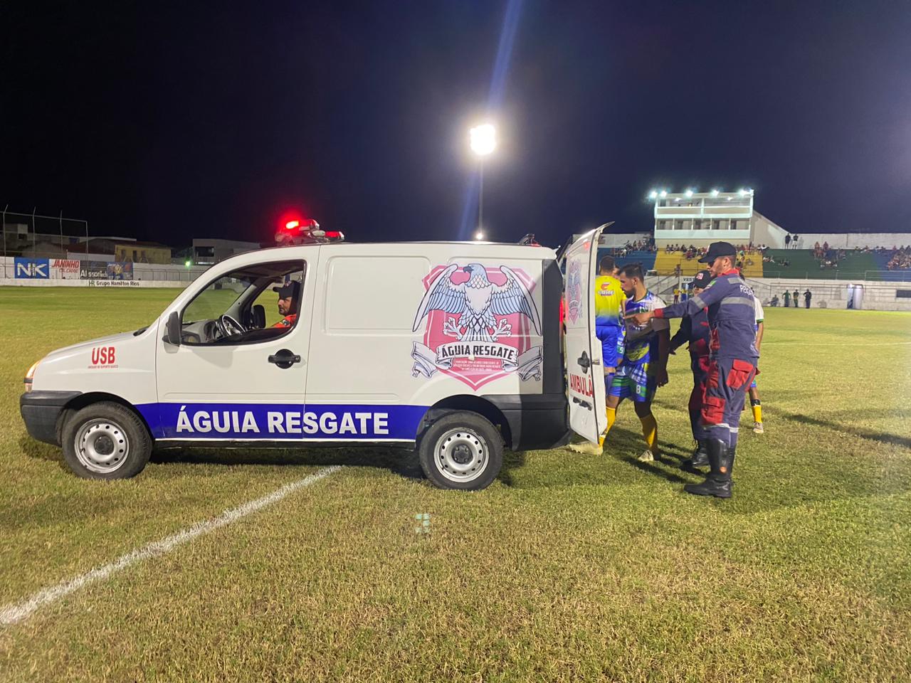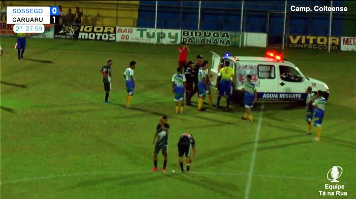 O duelo entre a equipe do Sossego x Vasco de Caruaru, válido pelo Campeonato Rural de Conceição do Coité na noite desta quinta-feira, 11, teve dois momentos de preocupação quando o portão do estádio e de acesso ao gramado foi aberto para entrada da ambulância do Águia Resgate.