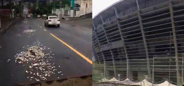 Torcedores do Vitória despejam sardinhas na Ladeira da Fonte Nova