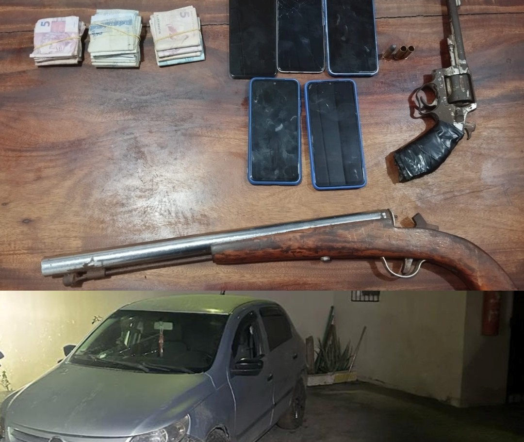 Durante a perseguição e troca de tiros com os militares, os dois suspeitos se envolveram em um acidente e abandonaram o veículo em uma rua ao lado da rodovia, no bairro Açude Tapera. Dentro do carro, os policiais encontraram uma bolsa contendo aparelhos celulares e certa quantia de dinheiro. Duas armas de fogo também foram apreendidas durante a ação.