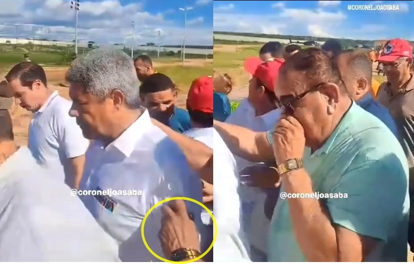 O Calila Notícias recebeu o vídeo mas não tem a informação de a roupa do governador foi atingida, aproximamos a imagem, mas não foi possível identificar sujeira. O vídeo também foi postado na página @coroneljoaosaba – Veja abaixo