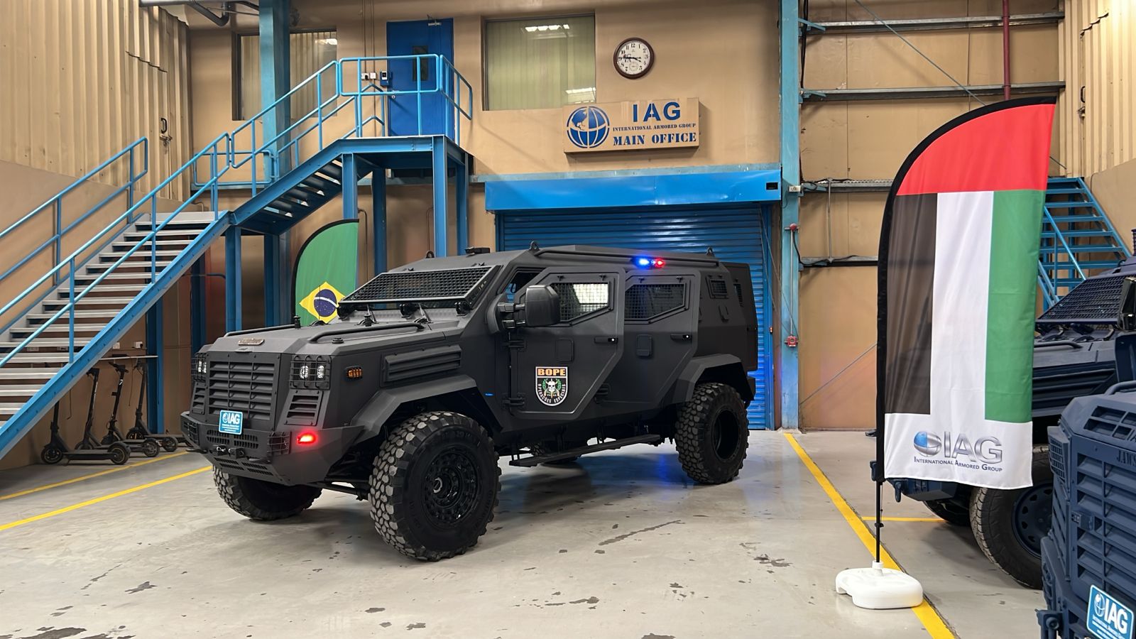A equipe, composta por integrantes da PM e PC da Bahia, está na cidade de Ras al-Khaimah, visitando a sede da empresa fabricante do veículo.