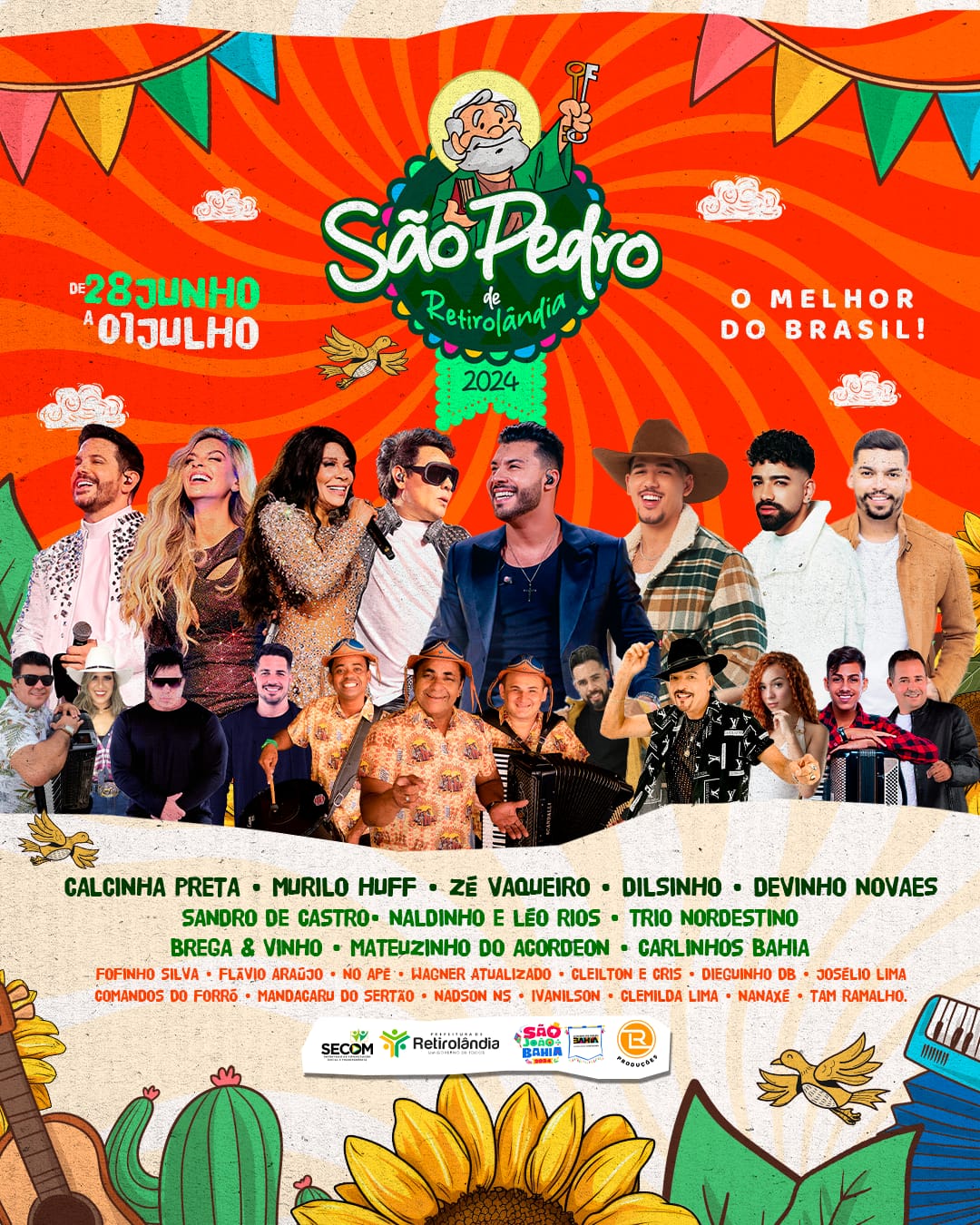 O gestor ressalta ainda que “o São Pedro de Retirolândia atrai turistas de diversas regiões, movimentando a economia local. A expectativa é que o evento reúna milhares de pessoas, que poderão desfrutar de quatro dias de muita diversão e alegria. toda a programação pode ser acompanhada nas redes sociais oficiais da Prefeitura de Retirolândia. Venha celebrar o São Pedro de Retirolândia e vivenciar momentos inesquecíveis em uma festa que combina tradição, cultura e muita animação”, finalizou o prefeito.