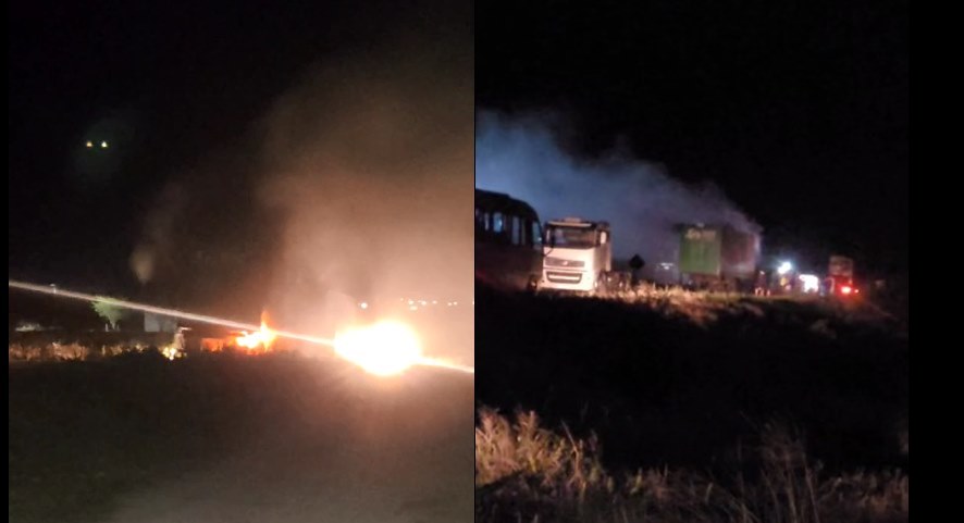 A equipe também realizou a sinalização da via para evitar outros acidentes, considerando que o incêndio ocorreu no topo de uma ladeira.