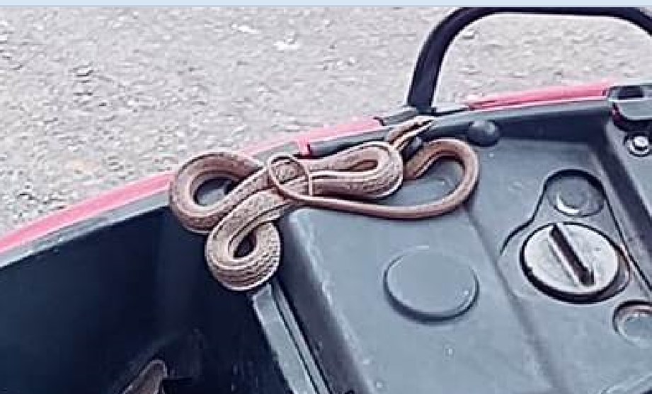 Morador da zona rural, muita gente pode imaginar que a cobra subiu na moto enquanto a moto estava lá, mas não foi isso que aconteceu. “O mecânico parou, entrou na farmácia e nesse espaço de tempo a cobra entrou, quando ele retornou para pegar a carteira que levantou o banco, viu o animal e levou um grande susto. Nossa equipe fez a captura e soltou em um local apropriado”, relatou Val como é conhecido o lider socorrista.