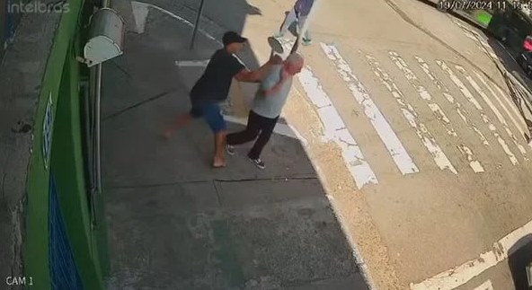 O idoso de 71 anos aparece em imagens de câmeras de segurança caminhando na calçada na Lapa, enquanto fala ao telefone. O ladrão se aproxima e puxa o aparelho da mão dele, saindo correndo. Logo em seguida, o rapaz de 17 anos vai atravessar a Rua Domingos Rodrigues e é atropelado por um ônibus, que passa por cima do corpo dele.