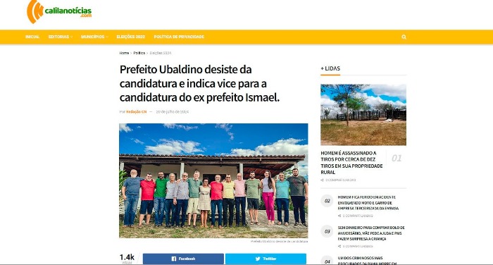 Esse mesmo grupo se reuniu no sábado passado (20) para iniciar a conversa para formação da aliança e circulou uma foto, o fato de Ubaldino aparecer ao lado de Isamel e demais lideranças do PT e demais partidos que apoiariam o nome de Ismael, alguém pegou a foto e fez uma montagem como se fosse uma publicação no Calila Noticias de que Ubaldino tinha desistido de concorrer e indicaria o vice de Ferreira.