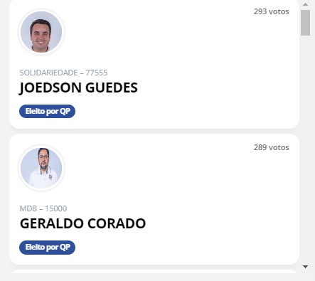 O primeiro suplente do MDB é Leonardo Lobato que obteve 139 votos.