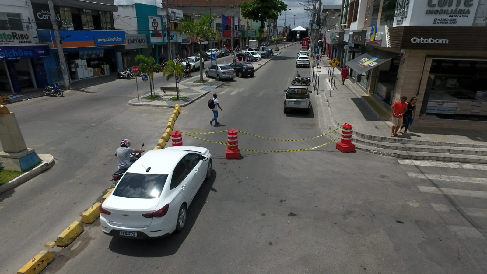 Diante da interdição os condutores de veículos que saírem da Fonte Luminosa e pretendem chegar a Praça do Mercado Municipal, precisam acessar a Praça da Matriz pela esquina da Ortocentro, ou descendo no sentido Salgadália e acessar outras ruas.