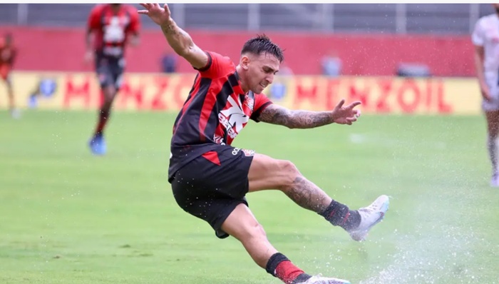 Aos 16 minutos, Eydison foi acionado em velocidade no ataque, mas perdeu a chance do contra-ataque para o zagueiro do Vitória.